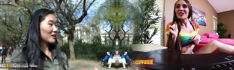 04:17Young lesbians Sissi and Mel have hump in public
